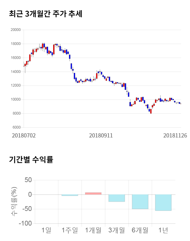 [그림 1] 최근 3개월 간 주가 추세 및 기간별 수익률