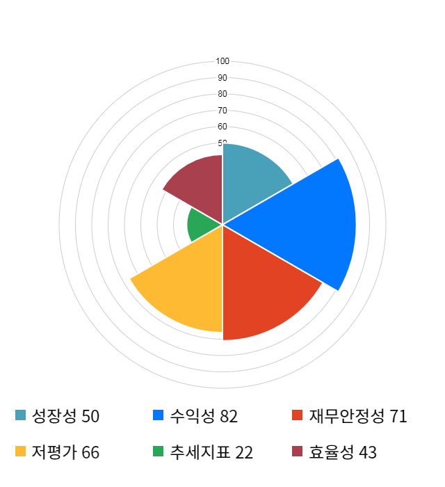AI 인공지능 종목 분석 시스템을 이용해 성장성, 수익성, 효율성, 안전성, 저평가성, 추세 등 주가 수익률에 영향을 줄 수 있는 6가지 핵심 투자 지표를 점수화하여 종목의 투자 매력도를 계산해보았다.