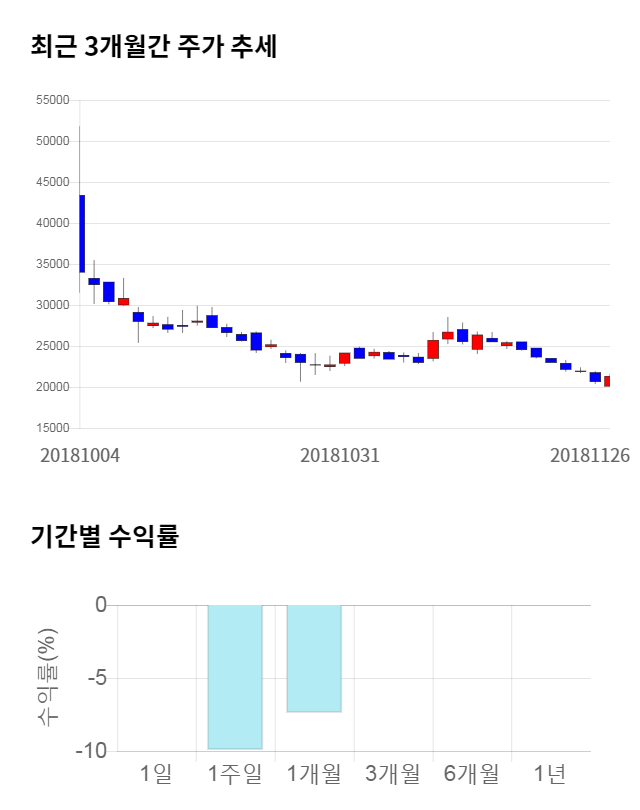 [그림 1] 최근 3개월 간 주가 추세 및 기간별 수익률
