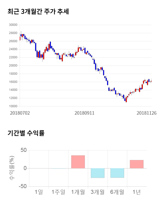 [그림 1] 최근 3개월 간 주가 추세 및 기간별 수익률