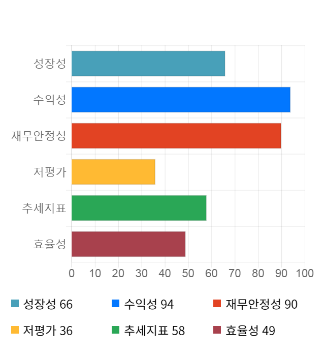 (위의 AI인공지능 점수는 재무 데이터를 기반으로 전체 상장 종목과 비교/분석하여 도출한 점수로 높은 점수가 반드시 높은 수익률을 보장하지 않습니다. 위의 자료는 당사의 추천 종목이 아니며, 투자 시 참고용으로 제시해드리는 것입니다. 핵심투자지표를 결합해 종목의 투자매력도를 종합 계산한 "인공지능 투자점수"는 "거장들의 투자공식" 앱에서 확인하실 수 있습니다.)