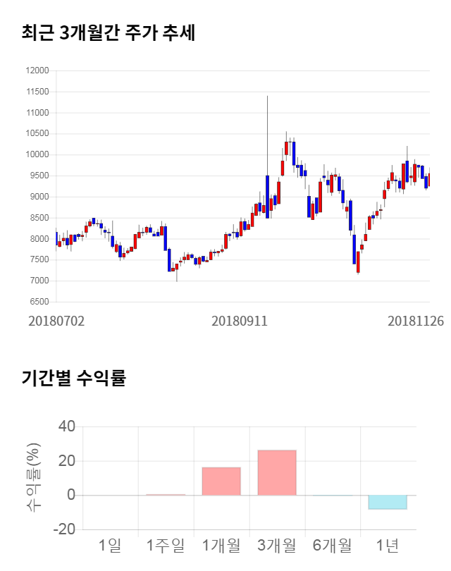[그림 1] 최근 3개월 간 주가 추세 및 기간별 수익률