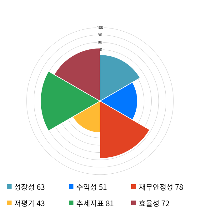 (위의 AI인공지능 점수는 재무 데이터를 기반으로 전체 상장 종목과 비교/분석하여 도출한 점수로 높은 점수가 반드시 높은 수익률을 보장하지 않습니다. 위의 자료는 당사의 추천 종목이 아니며, 투자 시 참고용으로 제시해드리는 것입니다. 핵심투자지표를 결합해 종목의 투자매력도를 종합 계산한 "인공지능 투자점수"는 "거장들의 투자공식" 앱에서 확인하실 수 있습니다.)