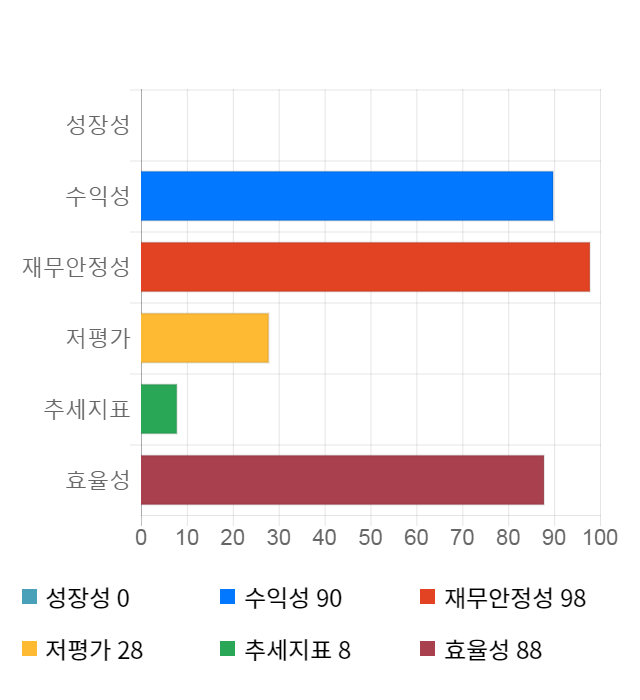 (위의 AI인공지능 점수는 재무 데이터를 기반으로 전체 상장 종목과 비교/분석하여 도출한 점수로 높은 점수가 반드시 높은 수익률을 보장하지 않습니다. 위의 자료는 당사의 추천 종목이 아니며, 투자 시 참고용으로 제시해드리는 것입니다. 핵심투자지표를 결합해 종목의 투자매력도를 종합 계산한 "인공지능 투자점수"는 "거장들의 투자공식" 앱에서 확인하실 수 있습니다.)