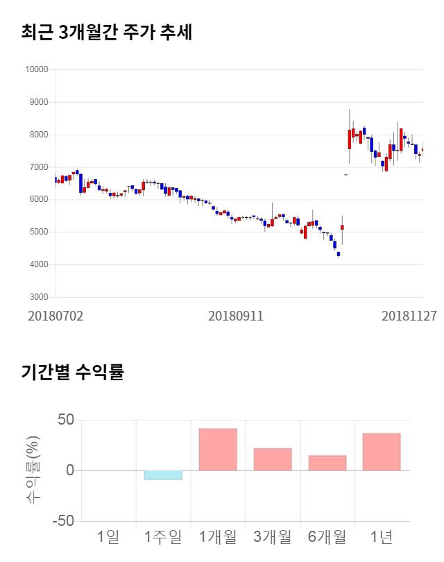[그림 1] 최근 3개월 간 주가 추세 및 기간별 수익률