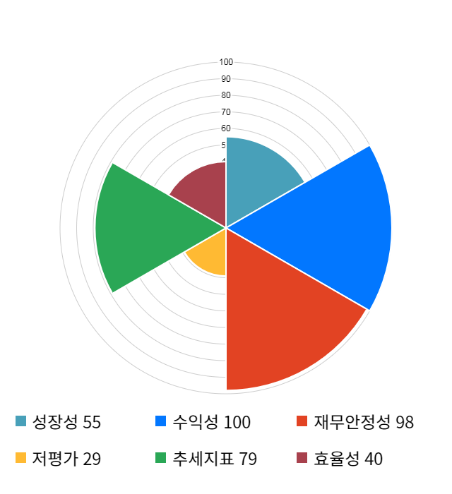 (위의 AI인공지능 점수는 재무 데이터를 기반으로 전체 상장 종목과 비교/분석하여 도출한 점수로 높은 점수가 반드시 높은 수익률을 보장하지 않습니다. 위의 자료는 당사의 추천 종목이 아니며, 투자 시 참고용으로 제시해드리는 것입니다. 핵심투자지표를 결합해 종목의 투자매력도를 종합 계산한 "인공지능 투자점수"는 "거장들의 투자공식" 앱에서 확인하실 수 있습니다.)