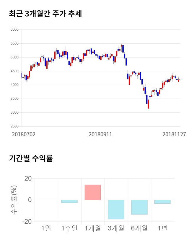 [그림 1] 최근 3개월 간 주가 추세 및 기간별 수익률