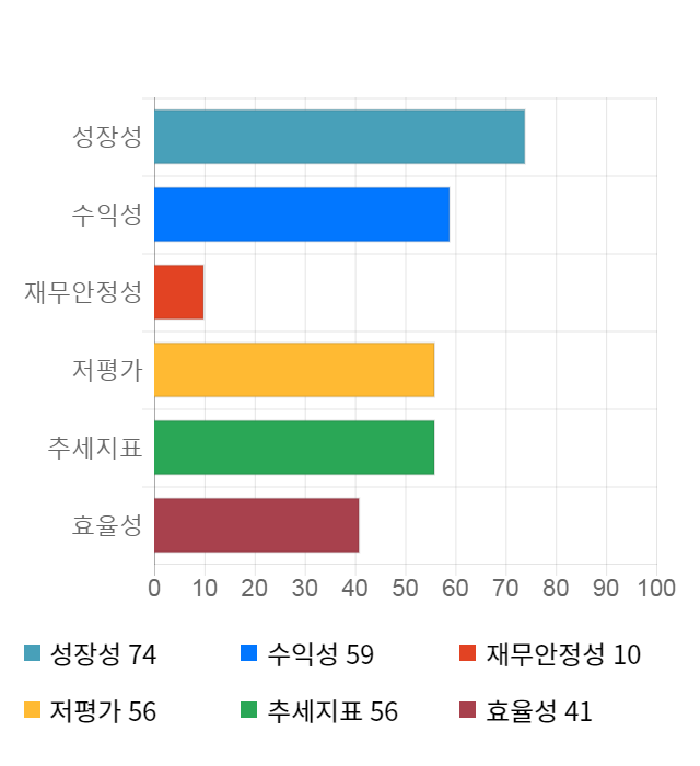 성장성 점수는 기업의 실적이 전년 동기 대비 얼마나 증가했는지를 나타낸 지표로 기업의 이익 성장 추세를 나타낸다.