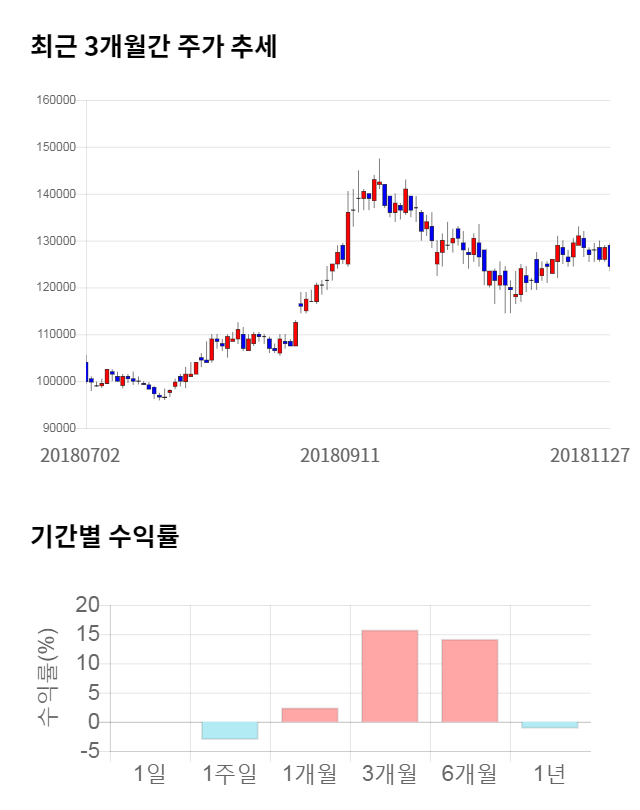 [그림 1] 최근 3개월 간 주가 추세 및 기간별 수익률