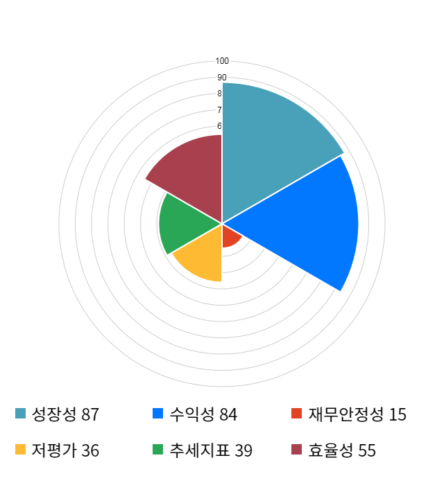 성장성 점수는 기업의 실적이 전년 동기 대비 얼마나 증가했는지를 나타낸 지표로 기업의 이익 성장 추세를 나타낸다.