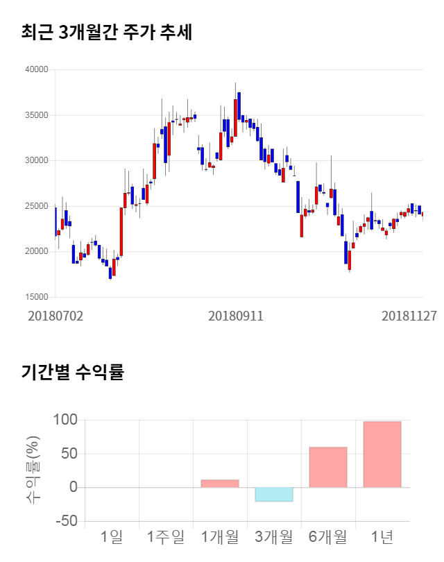 [그림 1] 최근 3개월 간 주가 추세 및 기간별 수익률