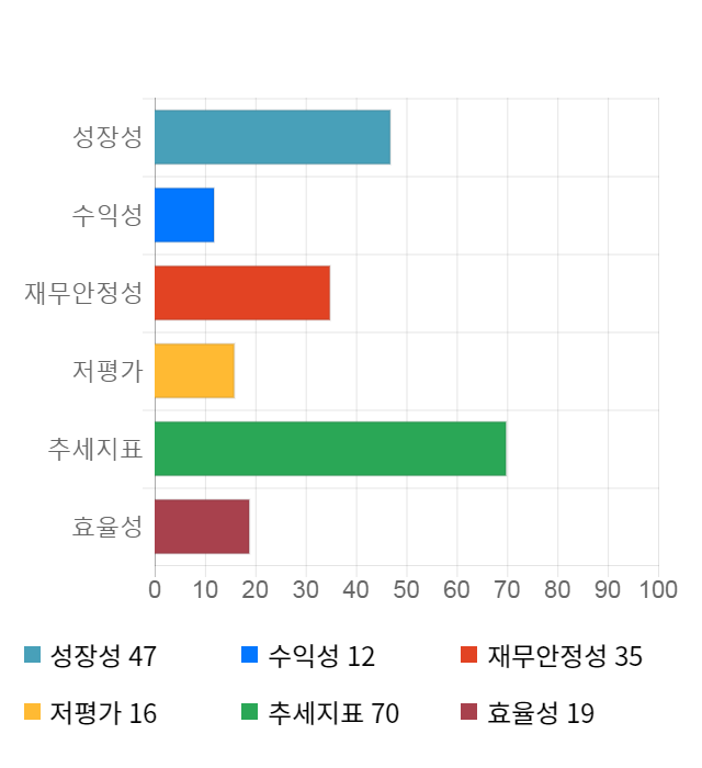 AI 인공지능 종목 분석 시스템을 이용해 성장성, 수익성, 효율성, 안전성, 저평가성, 추세 등 주가 수익률에 영향을 줄 수 있는 6가지 핵심 투자 지표를 점수화하여 종목의 투자 매력도를 계산해보았다.