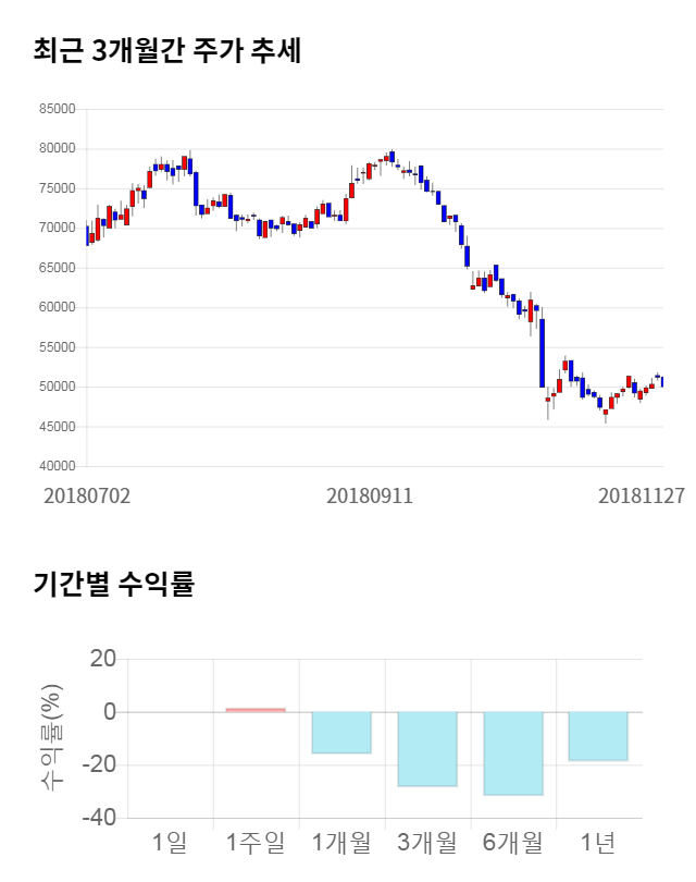 [그림 1] 최근 3개월 간 주가 추세 및 기간별 수익률