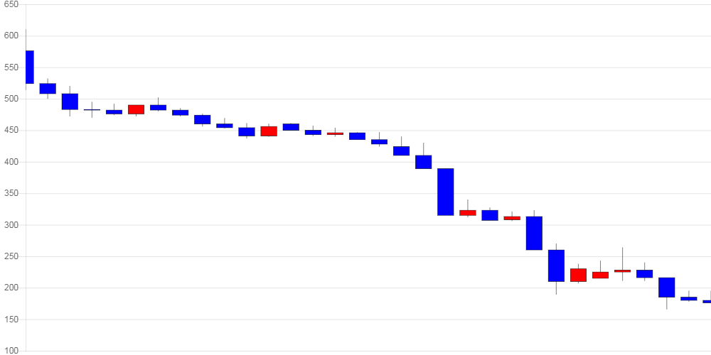 최근 1개월 고점은 610원이었으며, 현재 가격은 고점 대비 32.46% 수준이다.