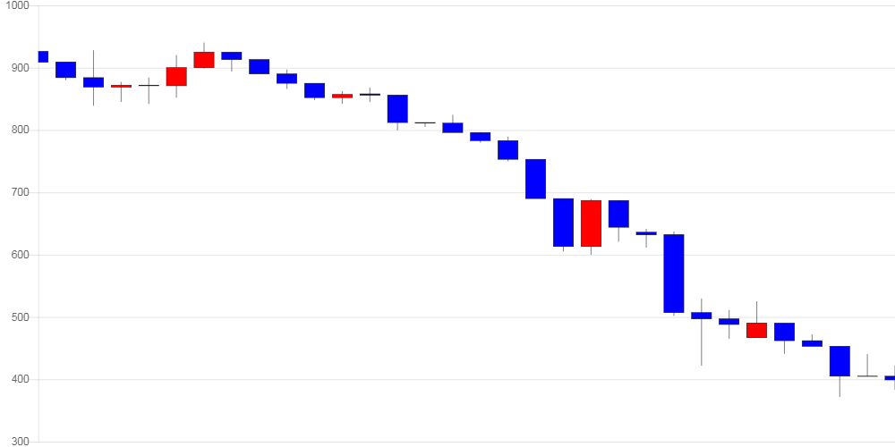 최근 1개월 고점은 940원이었으며, 현재 가격은 고점 대비 48.94% 수준이다.