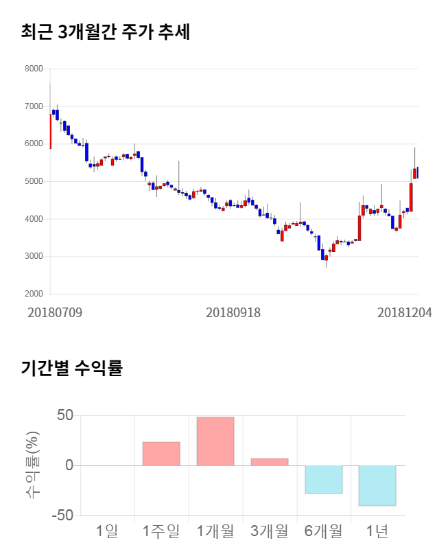 [그림 1] 최근 3개월 간 주가 추세 및 기간별 수익률