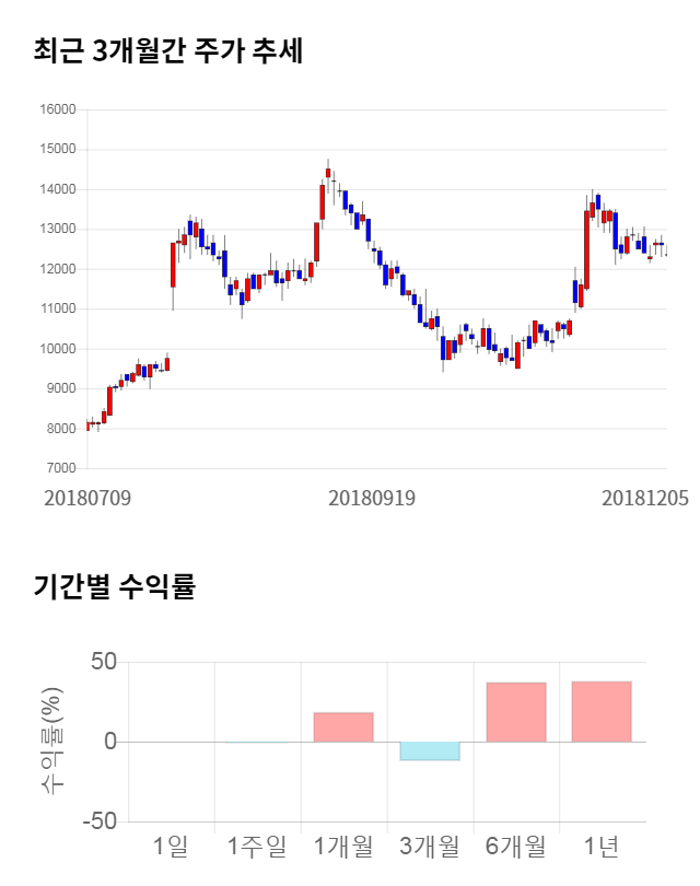[그림 1] 최근 3개월 간 주가 추세 및 기간별 수익률