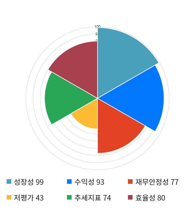 성장성 점수는 기업의 실적이 전년 동기 대비 얼마나 증가했는지를 나타낸 지표로 기업의 이익 성장 추세를 나타낸다.