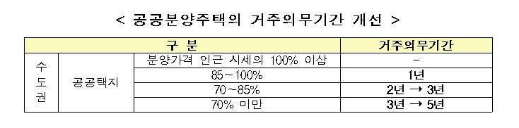 한편 공공분양주택의 거주의무기간은 분양가격과 인근주택가격의 시세차이에 따라 최대 5년까지 강화됩니다.