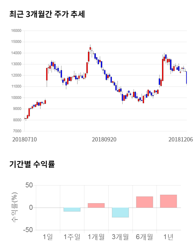 [그림 1] 최근 3개월 간 주가 추세 및 기간별 수익률