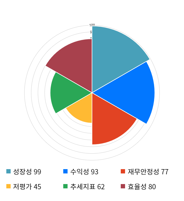 성장성 점수는 기업의 실적이 전년 동기 대비 얼마나 증가했는지를 나타낸 지표로 기업의 이익 성장 추세를 나타낸다.
