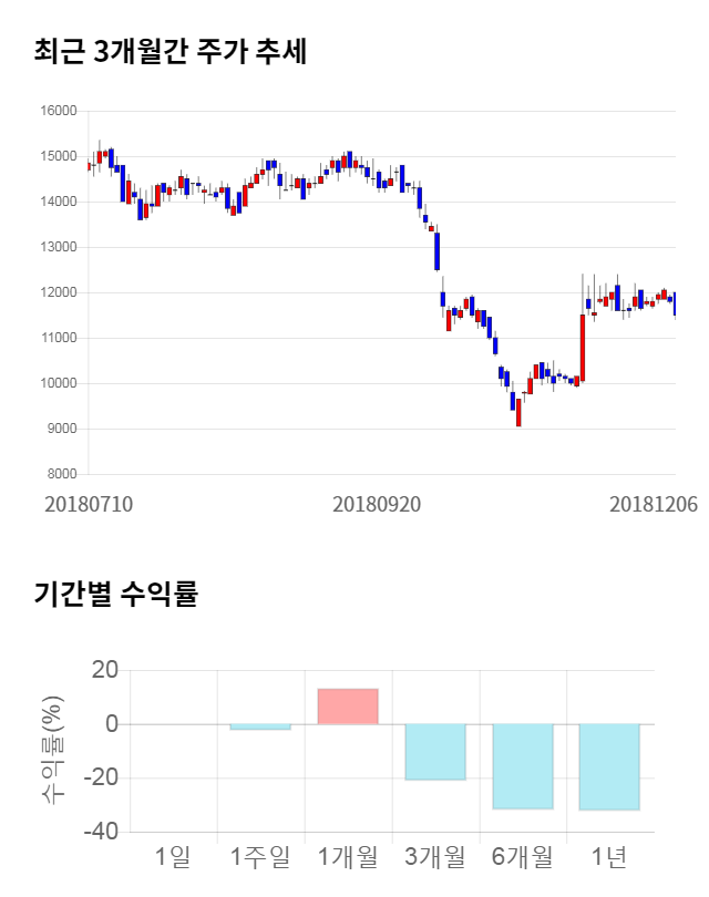 [그림 1] 최근 3개월 간 주가 추세 및 기간별 수익률