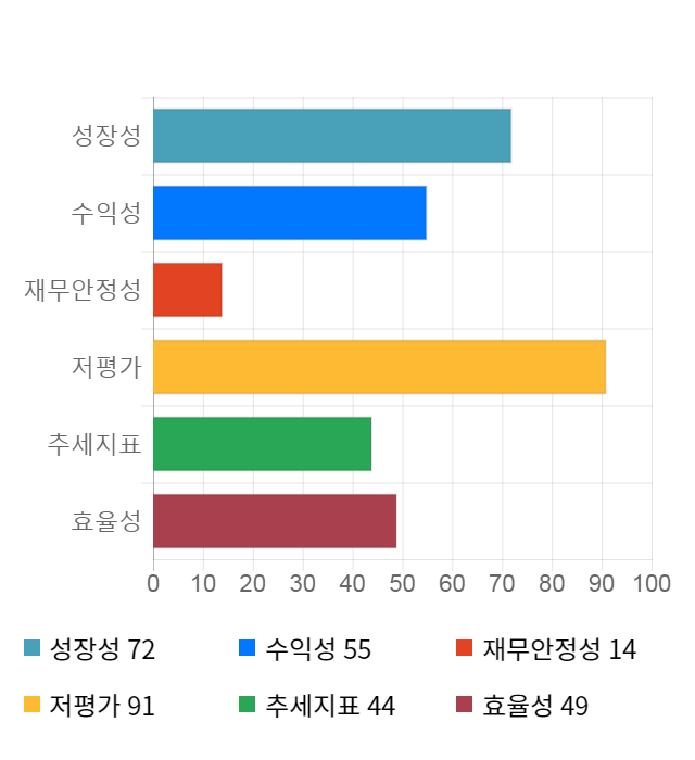 저평가 점수는 기업의 가치 대비 주가의 수준이 어느 정도인지를 나타낸다.