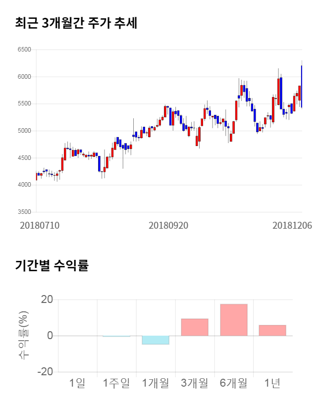 [그림 1] 최근 3개월 간 주가 추세 및 기간별 수익률