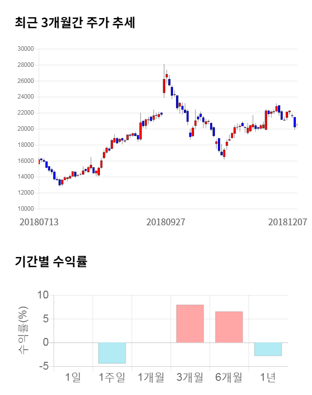 [그림 1] 최근 3개월 간 주가 추세 및 기간별 수익률