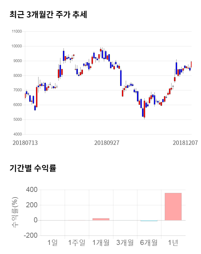 [그림 1] 최근 3개월 간 주가 추세 및 기간별 수익률