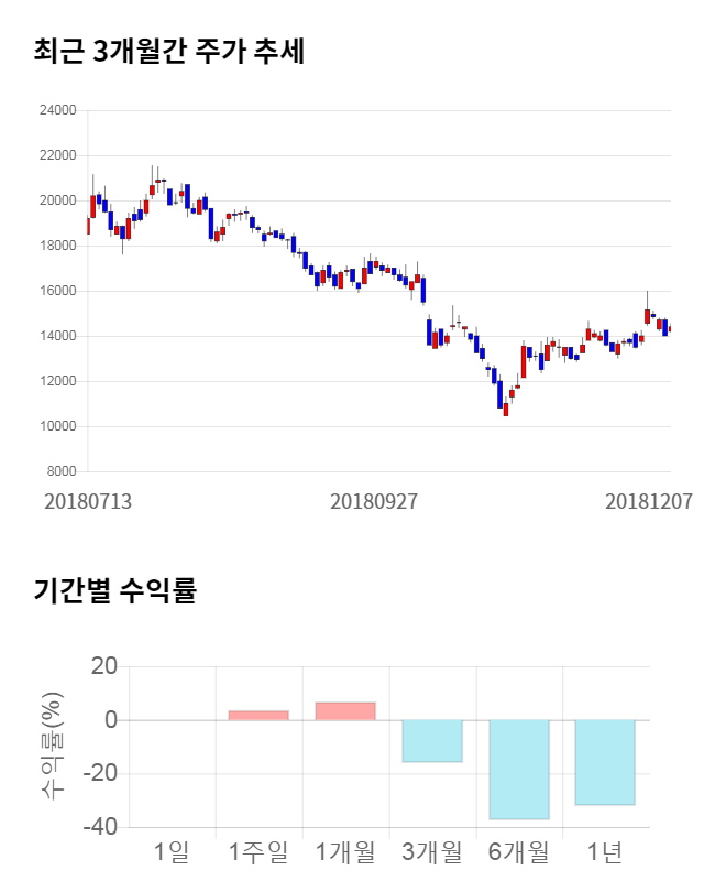 [그림 1] 최근 3개월 간 주가 추세 및 기간별 수익률