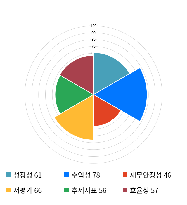 AI 인공지능 종목 분석 시스템을 이용해 성장성, 수익성, 효율성, 안전성, 저평가성, 추세 등 주가 수익률에 영향을 줄 수 있는 6가지 핵심 투자 지표를 점수화하여 종목의 투자 매력도를 계산해보았다.