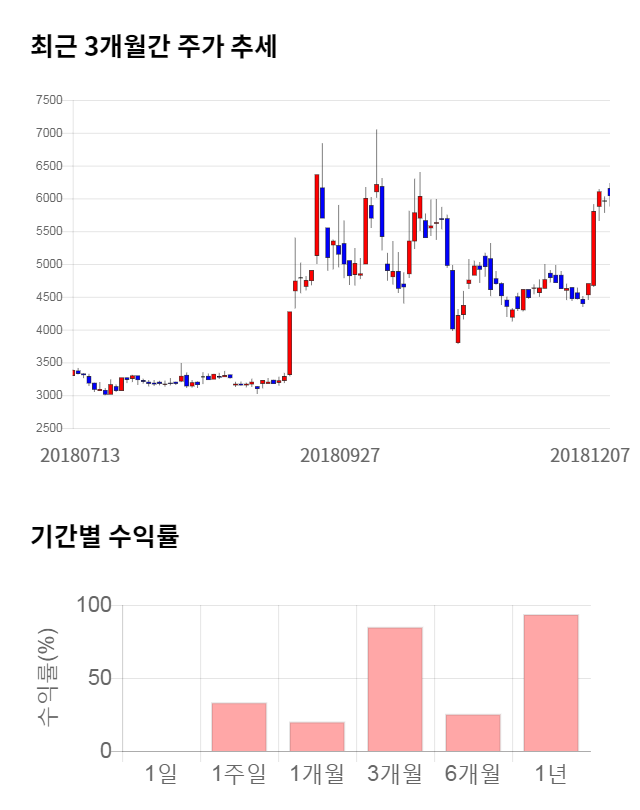 [그림 1] 최근 3개월 간 주가 추세 및 기간별 수익률