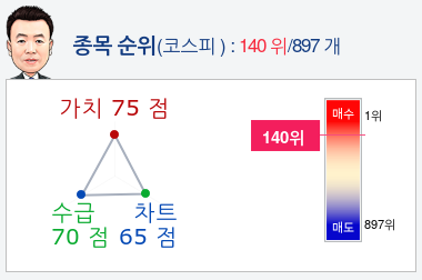 알파고가 가치, 수급, 차트로 평가한 이월드종목의 현재 종합순위는 코스피 897개 종목 중 211위로, 알파고는 이월드기업의 가치을 높게 평가 분석하고 있다.