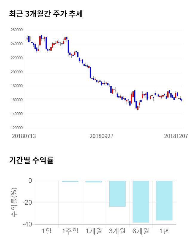 [그림 1] 최근 3개월 간 주가 추세 및 기간별 수익률