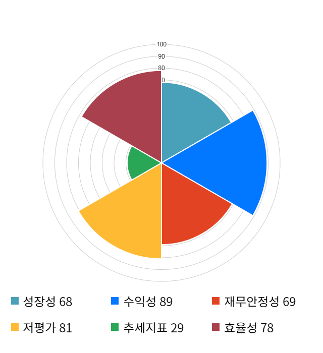 AI 인공지능 종목 분석 시스템을 이용해 성장성, 수익성, 효율성, 안전성, 저평가성, 추세 등 주가 수익률에 영향을 줄 수 있는 6가지 핵심 투자 지표를 점수화하여 종목의 투자 매력도를 계산해보았다.