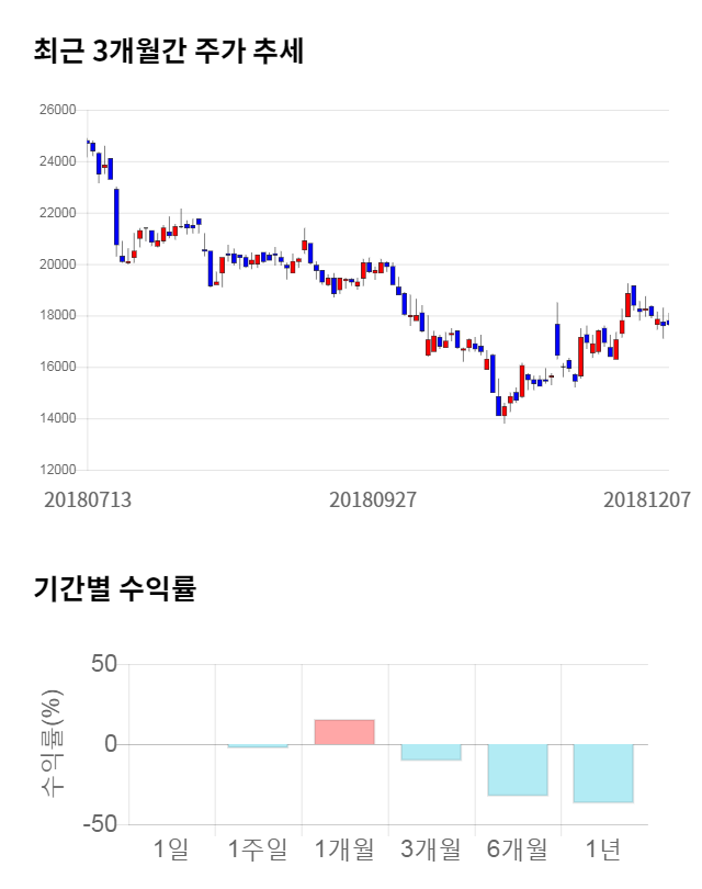 [그림 1] 최근 3개월 간 주가 추세 및 기간별 수익률