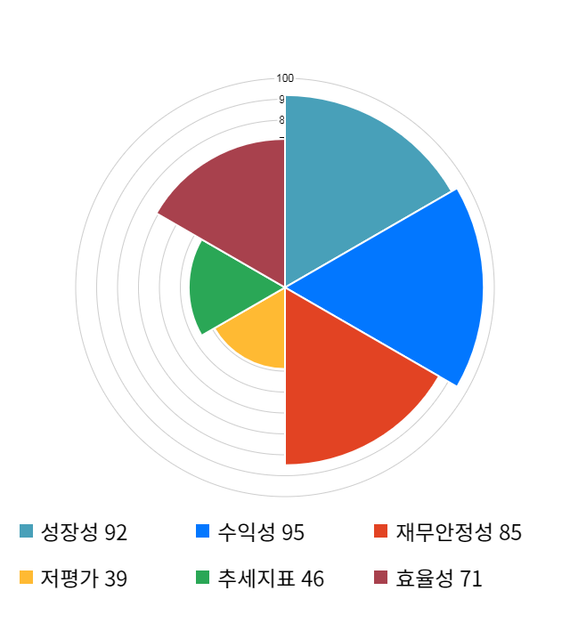 (위의 AI인공지능 점수는 재무 데이터를 기반으로 전체 상장 종목과 비교/분석하여 도출한 점수로 높은 점수가 반드시 높은 수익률을 보장하지 않습니다. 위의 자료는 당사의 추천 종목이 아니며, 투자 시 참고용으로 제시해드리는 것입니다. 핵심투자지표를 결합해 종목의 투자매력도를 종합 계산한 "인공지능 투자점수"는 "거장들의 투자공식" 앱에서 확인하실 수 있습니다.)