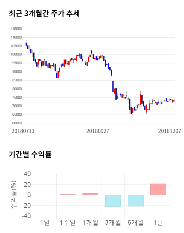 [그림 1] 최근 3개월 간 주가 추세 및 기간별 수익률