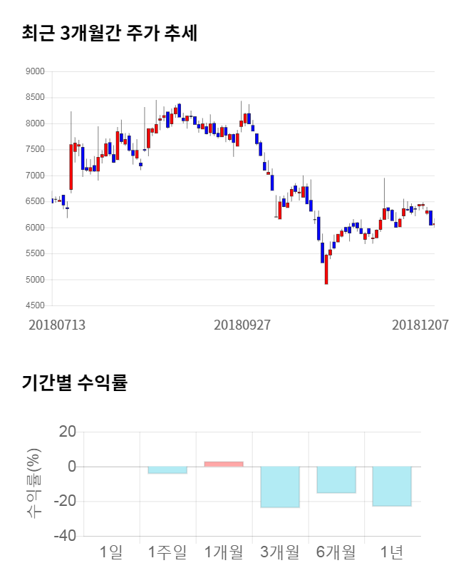 [그림 1] 최근 3개월 간 주가 추세 및 기간별 수익률