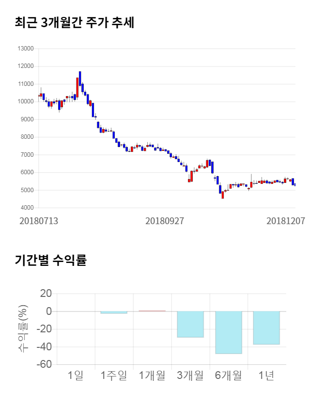 [그림 1] 최근 3개월 간 주가 추세 및 기간별 수익률