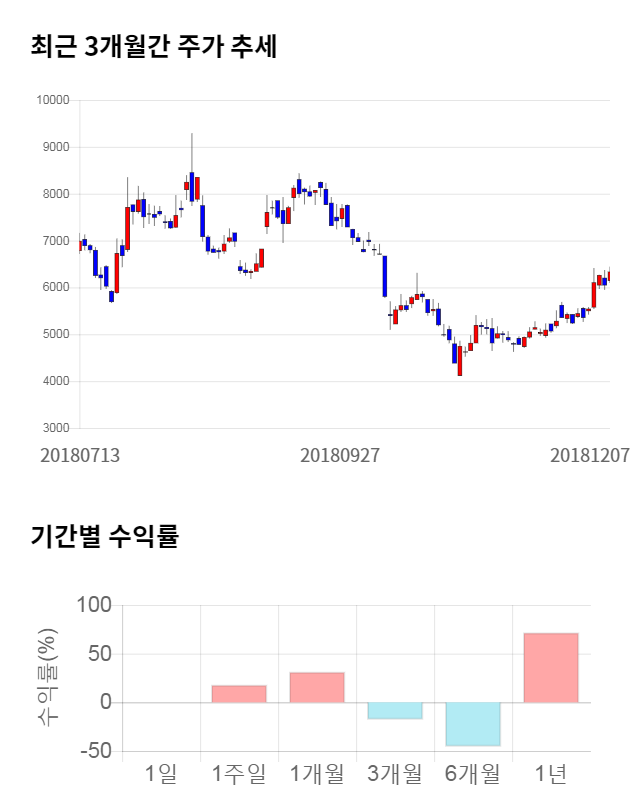 [그림 1] 최근 3개월 간 주가 추세 및 기간별 수익률