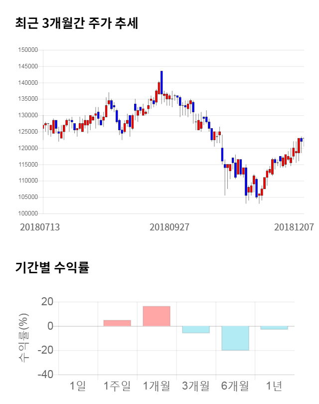 [그림 1] 최근 3개월 간 주가 추세 및 기간별 수익률