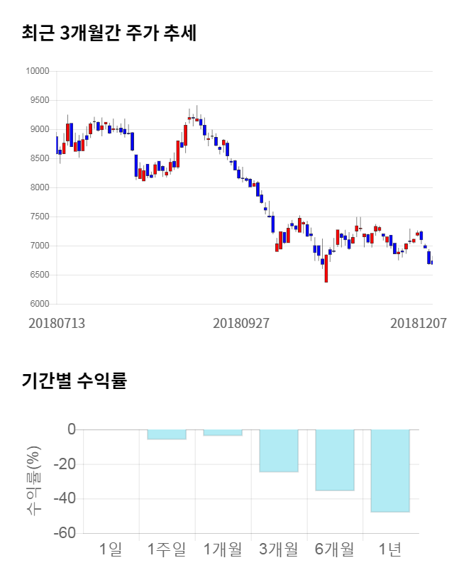 [그림 1] 최근 3개월 간 주가 추세 및 기간별 수익률
