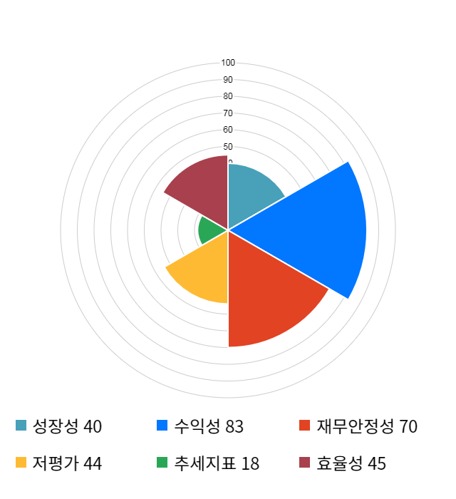 AI 인공지능 종목 분석 시스템을 이용해 성장성, 수익성, 효율성, 안전성, 저평가성, 추세 등 주가 수익률에 영향을 줄 수 있는 6가지 핵심 투자 지표를 점수화하여 종목의 투자 매력도를 계산해보았다.