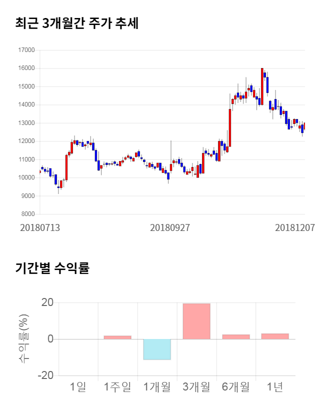 [그림 1] 최근 3개월 간 주가 추세 및 기간별 수익률