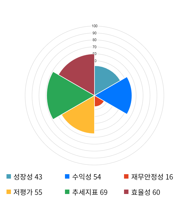 AI 인공지능 종목 분석 시스템을 이용해 성장성, 수익성, 효율성, 안전성, 저평가성, 추세 등 주가 수익률에 영향을 줄 수 있는 6가지 핵심 투자 지표를 점수화하여 종목의 투자 매력도를 계산해보았다.