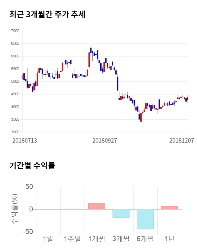 [그림 1] 최근 3개월 간 주가 추세 및 기간별 수익률