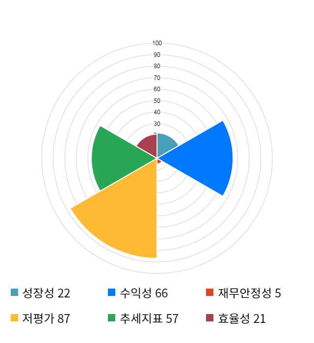 AI 인공지능 종목 분석 시스템을 이용해 성장성, 수익성, 효율성, 안전성, 저평가성, 추세 등 주가 수익률에 영향을 줄 수 있는 6가지 핵심 투자 지표를 점수화하여 종목의 투자 매력도를 계산해보았다.