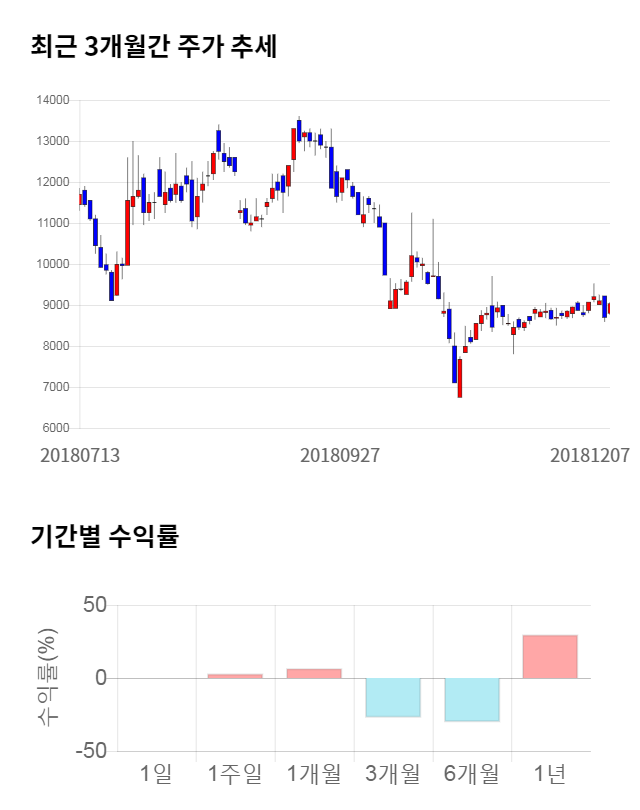 [그림 1] 최근 3개월 간 주가 추세 및 기간별 수익률